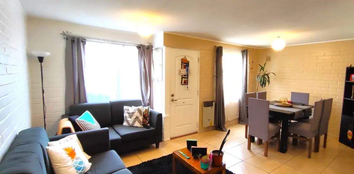 Hermosa y amplia casa ubicada en un entorno residencial, con acceso a áreas verdes y espacios comunitarios cercanos. La propiedad cuenta con una superficie total de 130 m² y una superficie útil de 110 m², distribuidos en dos niveles. El diseño exterior presenta una fachada con portón automático y jardín delantero, además de un gran espacio techado para estacionamiento. Inserta en barrio Santa María de Maipú, con acceso controlado, cercano a supermercados Hiper Lider, Santa Isabel, farmacias, Mall Plaza Oeste, Midmall, colegio Terraustral del Sol, Parque Tres Poniente, entre otros. Excelente conectividad por Autopista del Sol, Camino Melipilla y locomoción colectiva. En el interior, la casa dispone de cuatro dormitorios, cada uno con closet empotrado y ventanas al exterior, lo que permite una adecuada ventilación. Los dos baños están equipados con tina, lavamanos y muebles bajo cubierta, con terminaciones en cerámica. La cocina está amoblada con muebles superiores e inferiores, cubierta de granito y espacio para electrodomésticos, ofreciendo funcionalidad y organización. Cuenta con living comedor y una amplia sala de estar en el segundo nivel. El dormitorio matrimonial se encuentra en el primer nivel con baño privado. El patio trasero incluye una zona techada y un área de césped sintético, además de una parrilla construida, ideal para actividades al aire libre. La casa cuenta con portón automático, lo que facilita el acceso vehicular. El entorno destaca por la presencia de plazas y áreas verdes, así como calles tranquilas y arboladas. Se acepta crédito hipotecario. No lo pienses más y agenda tu visita ya!